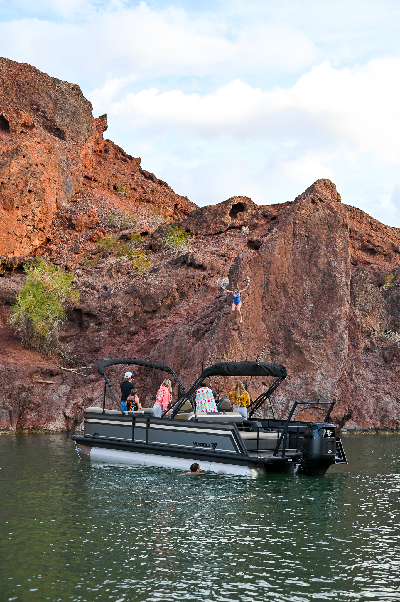 Our Lago X-S is the perfect boat for relaxing out on the water. With its characteristic “swingback” rear lounger, you can position the rear seat to face forward like a bench seat or face backwards making the seat into a sun deck or lounger. Our Lago X Series features the best overall “boat for your buck” in the industry. No other boat compares to what you get with our Lago X for the price point. Available in several upholstery colors, learn more below!