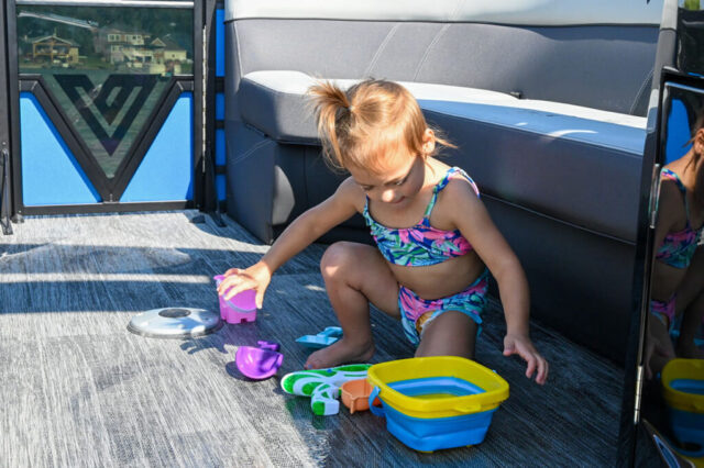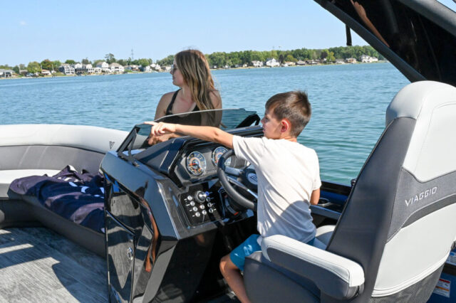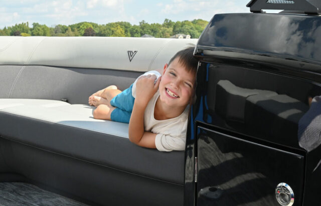 The Lago Z-S is the perfect boat for relaxing out on the water. With its characteristic “swingback” rear lounger, you can position the rear seat to face forward like a bench seat or face backwards making the seat into a sun deck or lounger.